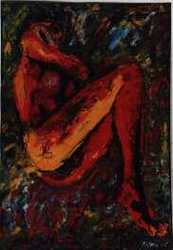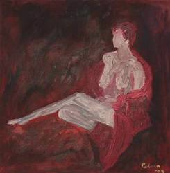 Sitting in red, oil on canvas, 60 x 65 cm, 1999