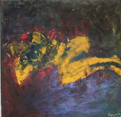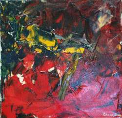 Yellow in red 38 X 38 oil on canvas 2-2009, in possesion of Mrs E de Brouwer, Tilburg